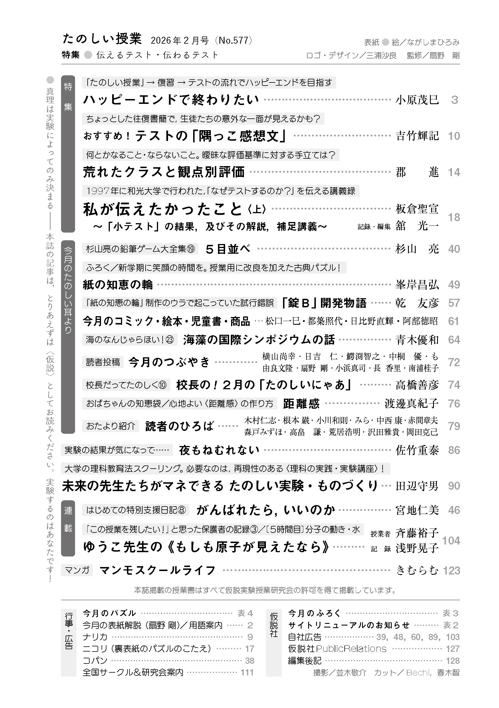 本誌は「明日の元気につながる,学ぶことが楽しくなる雑誌」というテーマのもと,読者のみなさんにもっともっと「たのしい授業」,そして「たのしむ授業」の手立てやヒントをご紹介する教育雑誌です。